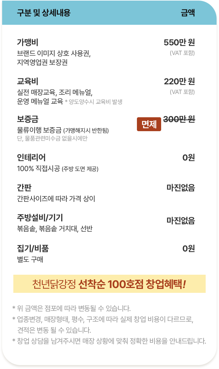 저희 천년닭강정은 프랜차이즈 전문가를 파견하여